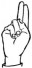 На ћирилици написано МИОМИРА ГРИЕССЕР састоји се из 15 слова [?]. Исписано ћириличном једноручном азбуком за глувонеме: